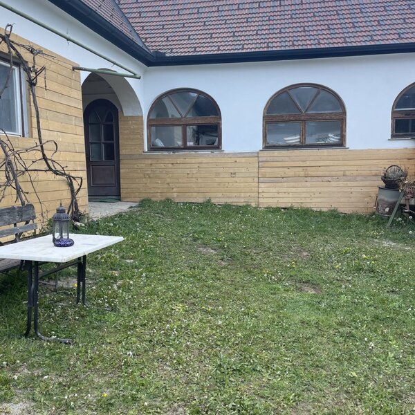 Our farm is quietly and idyllically located, surrounded by vineyards and orchards, with a wonderful view of the beautiful Riegersburg. Centrally located and yet away from the busy streets, you have a good starting point for leisure activities: Only 1 km to the bathing lake with leisure facilities and restaurant, 3 to 5 minutes walk to good traditional Austrian wine restaurants and only 2 km to town. The most popular spas and adventure pools, dinosaur park, castles and museums are also conveniently close by. The Riegersburg cycling and hiking map will take you along the well signposted routes of the region. If you want to get to know the building and farm a bit better, we are happy to guide you through the orchard and vineyard and let you taste the homemade specialities in the old cellar. Our younger guests will be delighted with the children's playground, fresh fruit and delicious fruit juices. Prices: Rooms: Double room: EUR 22 to 28 per person including breakfast Discounts for children Holiday apartments: For 4 persons EUR 68 per day Each additional person EUR 10 per day Final cleaning EUR 32