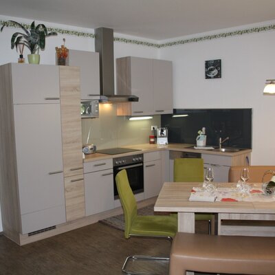 Mit ca. 120 m² bietet unser Haus Platz für 2 bis 10 Personen. Die Wohnküche ist mit allem Komfort ausgestattet. Der Esstisch ist ausziehbar und bietet reichlich Platz.