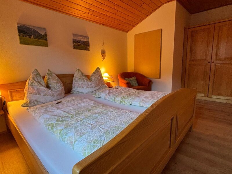 Cozy holiday apartment furnished with solid wood furniture. This 2-room apartment features one room with a double bed. The eat-in kitchen includes a cozy seating area, and the balcony invites you to relax with beautiful views.