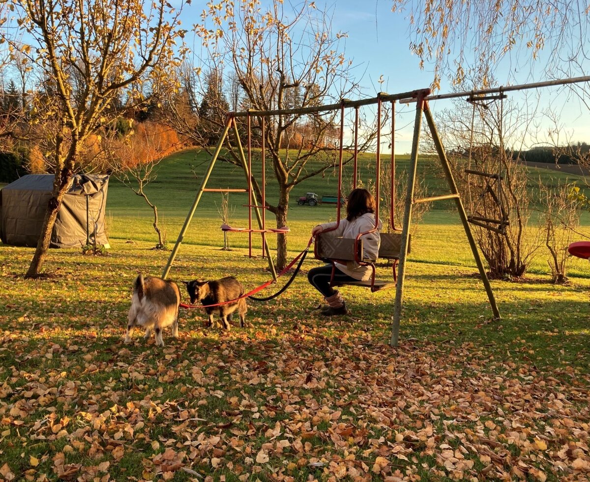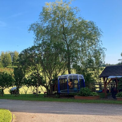 Unser Hof liegt inmitten von Wald, Wiesen, Weiden. Gemütlicher Außenbereich mit Gartenlaube, Spielplatz, Obst- und Gemüsegarten.