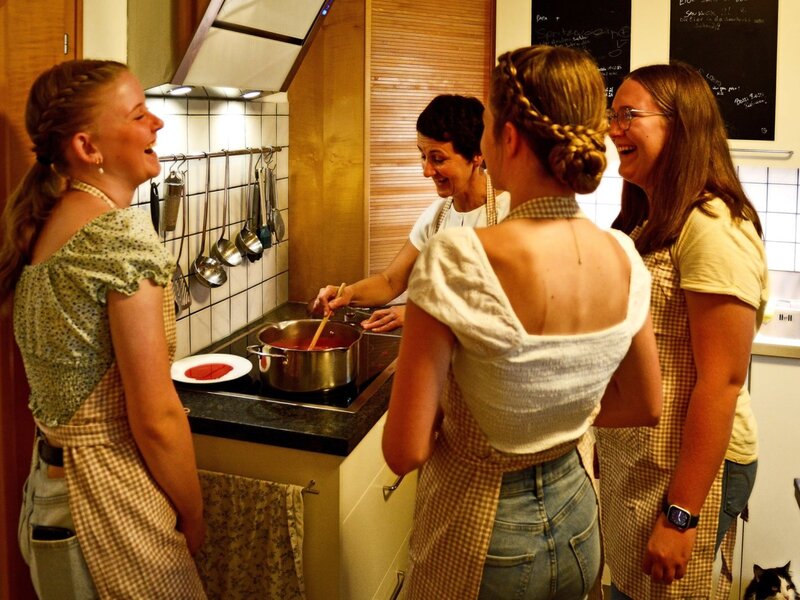 It is important to us that you enjoy your breakfast. It is the start to a wonderful vacation day! Our motto: REGIONAL - SEASONAL - SERVED WITH LOVE! Our baker delivers bread and baked goods to the house every morning. The ham is provided by the farmer from the next village over, yogurt comes from the dairy, and we make all of our own jams! Currants, raspberries, and blackberries are picked fresh every morning, ready to add into your muesli. Herbs and elderberry blossoms are made into sirups for thirst quenchers full of vitamins. ENJOY!