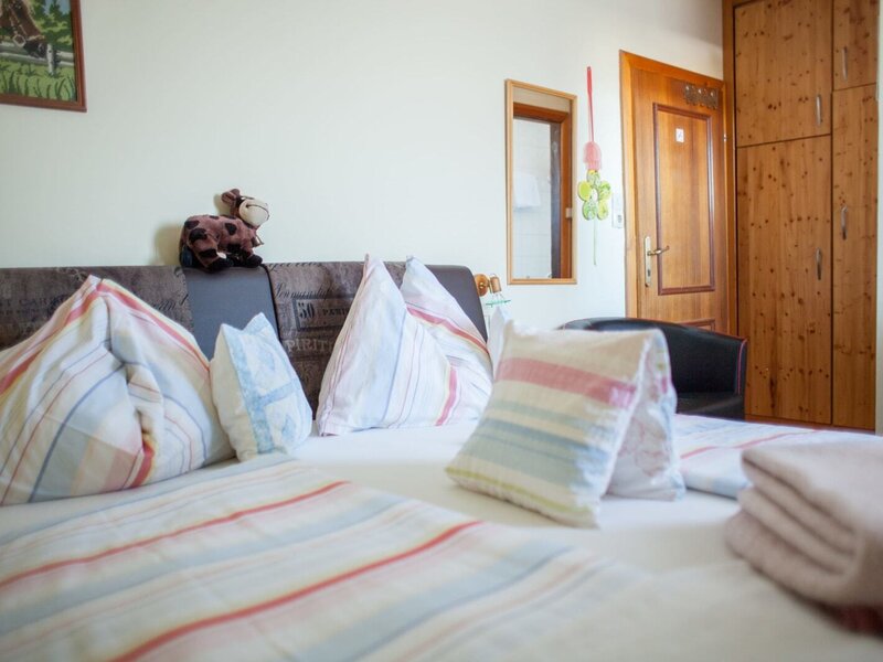 Holiday apartment in our renovated farmhouse with a bedroom for the parents and a children’s room, living room with kitchen and dining corner, shower and toilet, satellite TV, radio and small balcony.