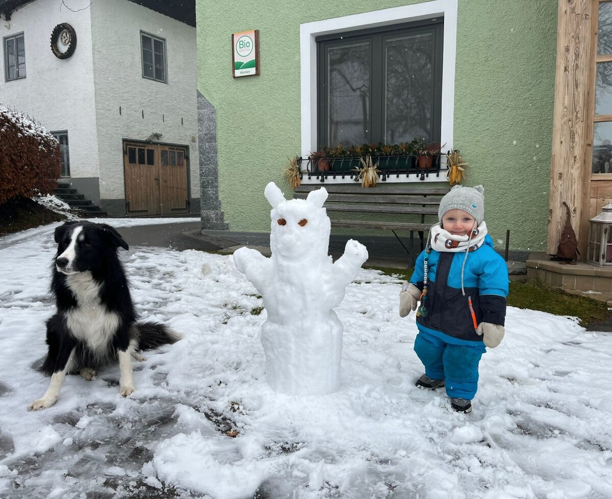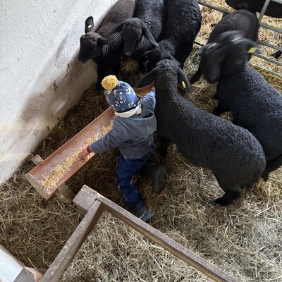 Wir führen unseren Bio Betrieb im Nebenerwerb mit Hauptaugenmerk auf Lämmermast, wobei unsere Schafe den größten Teil des Sommers selbst auf Almurlaub sind. Das heißt aber nicht, dass unser Stall während der Sommermonate leer steht. Immer anzutreffen sind die Ziegen Memi&Mika, die Meerschweinchen Remi&Demi, die Kanninchen Schnuffl&Chipsy, sowie unsere kleine Hühnerschaar. Dann gibt es natürlich auch noch unsere Hofwächter, die Hündin Alpha und die zwei Katzen Roxy&Mitzi. Außerdem findet man bei uns am Hof auch eine urige Bienenhütte, wo ein paar fleißige Bienen wohnen.