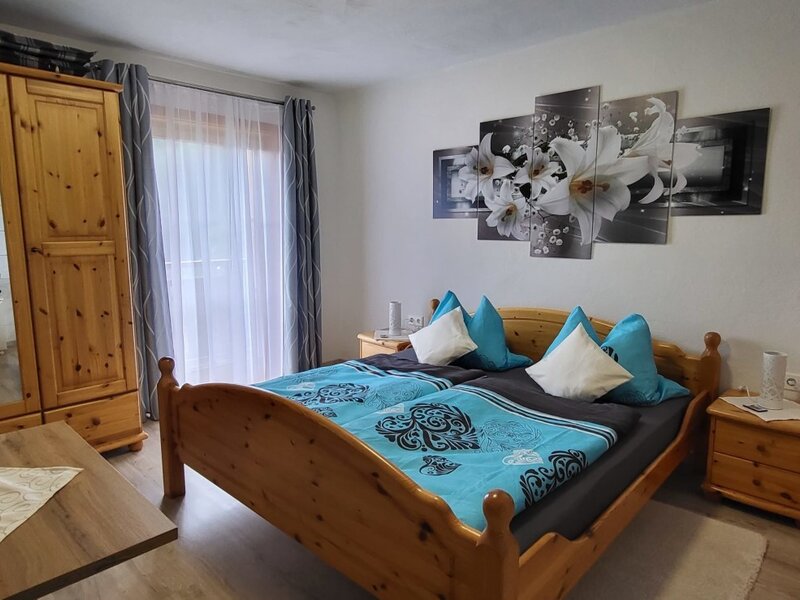 The room with double bed and the space with bunkbeds can be separated by means of a connecting door.