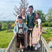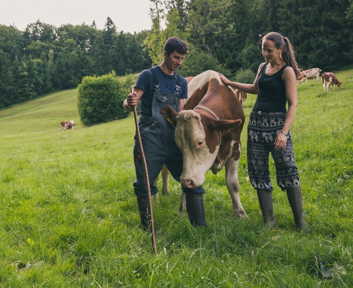 Das Herzstück unseres Bio-Heumilch-Betriebs sind unsere 28 Milchkühe und die weibliche Nachzucht. Die tägliche Stallarbeit (füttern, ausmisten, melken, Versorgen der Kälber) können von den Gästen miterlebt bzw. auf Wunsch erlernt werden. Unsere Pferde und Katzen freuen sich über Aufmerksamkeit in Form von Streicheleinheiten oder ebenfalls um Mithilfe beim Versorgen. Je nach Jahreszeit können die Früchte im Garten gerne genascht werden. Auf Wunsch kann (gegen Gebühr) eine Wild-Kräuterwanderung mit der Bäuerin und ausgebildeter Kräuterpädagogin gebucht werden.