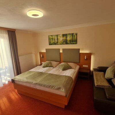 Das Familienzimmer Berg mit Balkon bietet modernen Komfort und reichlich Platz für bis zu 4 Gäste. Zwei getrennte Schlafzimmer sorgen dafür, dass Groß und Klein erholsame Ruhe genießen können. Die hochwertige Einrichtung schafft eine gemütliche Atmosphäre, während ein LED-Fernseher mit SAT-Empfang für Unterhaltung bereitsteht. Das Badezimmer mit WC, Badewanne und Föhn ist bestens ausgestattet, und Handtücher, Badetücher sowie Bademäntel liegen für euch bereit.