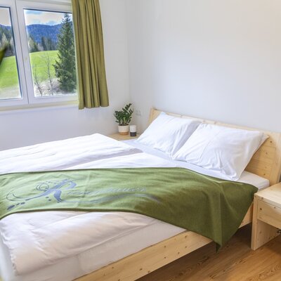 2 Schlafzimmer mit Doppelbetten, 1 Ausziehcouch für weitere 2 Erwachsene. Spielecke für die Kleinen, Gitterbett, top-ausgestattete Wohnküche mit genügend Platz am großen Tisch zum gemeinsam Essen, einer großen Couch zum Kuscheln und Balkon mit Sitzgarnitur für nette Stunden in der Abendsonne mit Blick auf Grasluppteich, Muhrenteich und die schöne Berglandschaft.