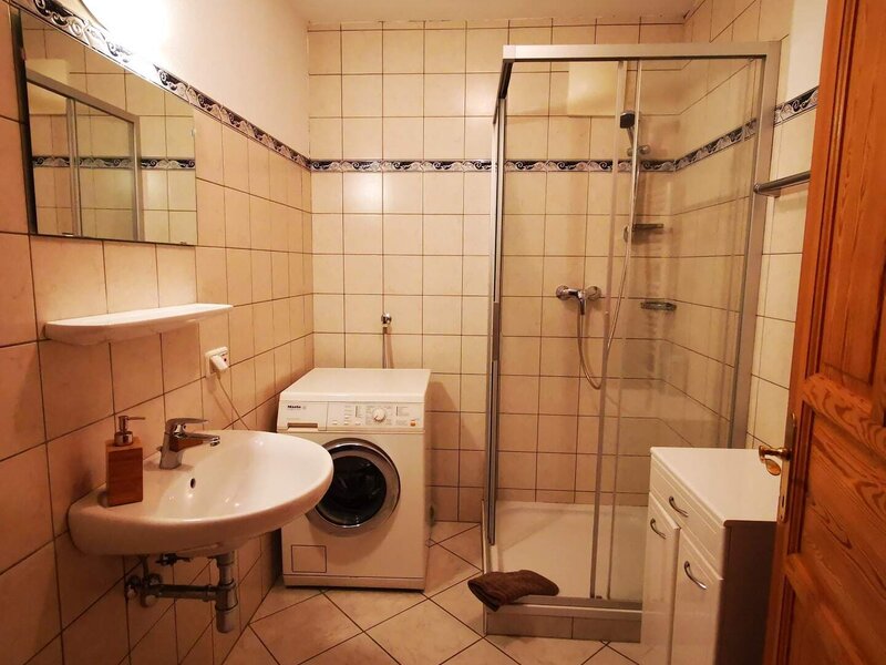 The holiday apartment is on the 1st floor with views of the mountains. The holiday apartment is fitted with wooden furniture. The kitchen is fully equipped. Both of the bedrooms are separated by a connecting door. In the bathroom there is a shower and WC. Bed linen and towels are available.