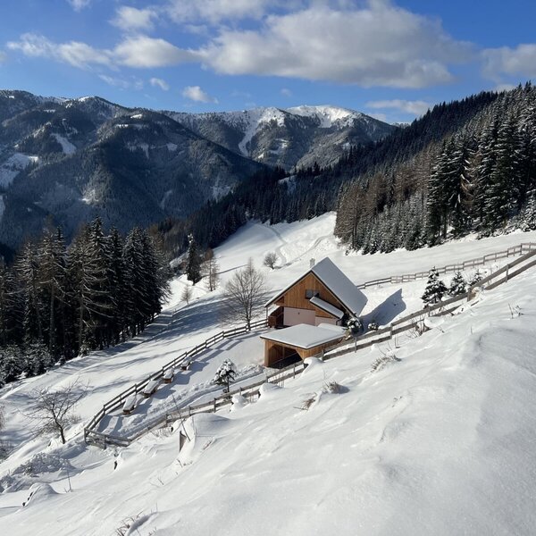 The rustic, cosily appointed wooden cabin is located at the sunny edge of the forest, with open views of the valley. Circular hiking trails to serviced alpine cabins, in winter 2 minutes from the ski lift, piste next to the cabin, own winter parking space. In summer, grazing cattle, a bench and a well in front of the cabin. Vestibule, kitchen with running water, electric cooker, microwave, coffee percolator, crockery, fridge, parlour with tiled stove, sofa, 1 bedroom with 3 beds, bath with shower, separate WC, hot water boiler. On the upper floor are 2 bedrooms, 1x3, 1x4 beds, no bed linen. Heating with tiled stove or electricity.