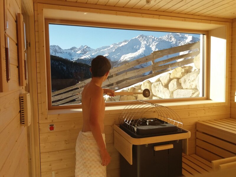 • Wellness area with sauna, infrared cabin, Kneipp, tea bar and panoramic pine lounge.