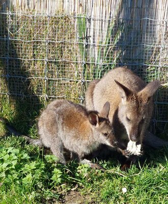 Bei uns leben Rotnacken-Wallabys, Hasen und Milchkühe. Die Tiere dürfen gerne besucht und gefüttert werden – besonders Kinder freuen sich über den direkten Kontakt zu den Tieren.