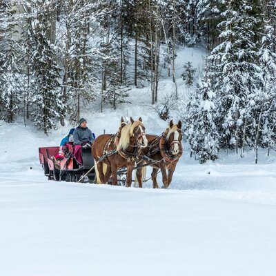 We would like to take you on a horse sleigh ride across the snowy landscape of the Flachau valley.