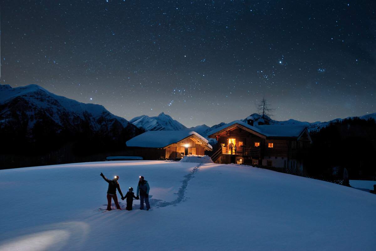 Passionate stargazers grab a lounger, wrap themselves in a warm blanket and get started. Let’s spot some stars and constellations! “Look, up there, that’s Orion. Unmistakably with his sword and belt.” Further to the right, that’s the Plough. You can easily identify the handle. You can distinguish the Pleiades, a bright star cluster. In the northern sky, Cassiopeia is recognisable due to its distinctive “W” shape. Spanning across the night sky, the Milky Way can be seen as a hazy band of light. A peaceful look at the stars instead of the flickering lights of a disco ball. Discover a form of joy that you’ll only find in Austria’s mountain cabins. Uncover the essence of a holiday in the mountains. Where light pollution has not yet marred the beauty of the night sky.